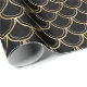 Este papel de embrulho apresenta um elegante padrão de escala de folha de ouro falso sobre fundo preto.