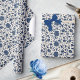 Papel De Presente Padrão Floral Azul/Cinzento Branco Inverso