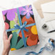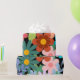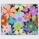 Com este adorável e caprichoso papel de embrulho, você pode apresentar seus presentes de uma forma única e colorida. O padrão inclui folhas vivas, borboletas e flores em tons de laranja, rosa, roxo e amarelo em fundo preto.