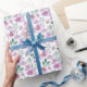 O design de peônia do papel de presente adicionará um toque especial a qualquer presente. Este design feminino foi criado usando aquarela em um fundo texturizado. Padrão repetitivo elegante em tons de rosa e roxo.