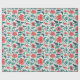 Este é um padrão floral colorido de coloração aquosa com flores vermelhas e folhas verdes sobre fundo branco.