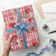 Papel De Presente Padrão Floral Vermelho Moderno do Tartan
