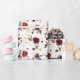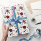 Papel de embrulho com contorno dourado e padrão floral de vinho e rosa burgundy para qualquer ocasião.