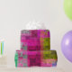 Este papel de enrolamento apresenta um padrão geométrico abstrato em azul, rosa e mais cores. Arte fractal moderna. Papel de enrolar moderno para qualquer ocasião.