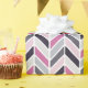 Folha de presente de padrão de diafragma geométrico em acentos de roxo, rosa e cinzas.