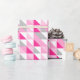 Padrão geométrico de tendências em rosa, branco, cinza.