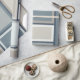 Padrão Geométrico Moderno do Século Médio Modular em Cinzas Azuis Neutrais e Taupe. Formas quadráticas limpas com uma estética moderna da safra do século 20. Design simples e sofisticada de Kierkegaard Design Studio.