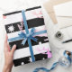 O padrão de renas holográficas de Natal moderno e bonito com listras brancas e pretas.