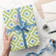 Papel De Presente Padrão Ikat de Ouros Verdes Azul