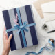 Papel De Presente Padrão Listrado Azul Navy Azul Claro Elegante