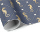 Papel De Presente Padrão marítimo azul e Dourado