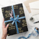 Papel De Presente Padrão Moderno Preto do Nome da Festa de aniversár