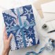 Papel legal, de formato náutico, de cor azul e branca, que inclui cascas marítimas, corais, algas marinhas e estrelas-do-mar.