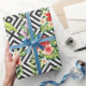Papel De Presente Padrão octogonal preto e branco e flores tropicais