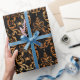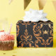 Use este papel de embrulho de Halloween com aranha assustadora em padrão de brocadas de cobre em fundo preto quando você dá a sua família ou amigos um presente assustador neste Halloween