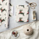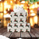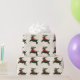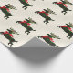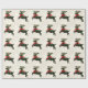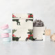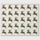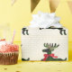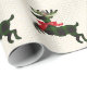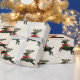 Padrão de veados verdes, xadrezes e russos com cones de pinheiro boho e agulhas de pinheiro em chifre com uma fita vermelha ao redor do pescoço. Dourada palavra escrita "fa la la".