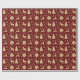Papel De Presente Padrão Rustic Dourado de Natal dos Veados em Verme