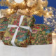 Papel De Presente Padrão tradicional de árvores de Natal decoradas