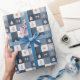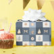 Enrole seus presentes em estilo festivo com este papel embrulho de Natal com um charmoso padrão controlado. Adornada com árvores aquáticas, velas, arcos, estrelas e ornamentos em marinho e tons suaves, é perfeita para embrulho de presentes de Natal, favoritos para festas ou decoração sazonal. Uma forma na moda para adicionar alegria de Natal a cada presente.