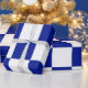 Papel De Presente Padrão Verificado Real Azul e Branco