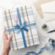 Papel De Presente Padrão Xadrez Clássico Bege e Azul