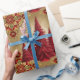 Papel De Presente Padrão Xmas Dourado da árvore de Natal Vermelho El