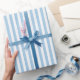Papel De Presente Padrões com risca azul e branca