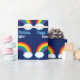 Belo invólucro de presente personalizado do arco-íris em azul marinho com bonito arco-íris com nuvens brancas e seu texto personalizado. LGBT ou papel de embrulho de orgulho gay para um aniversário ou outra ocasião comemorativa.