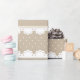 Belo papel de embrulho bege e branco com bolinhas, listras e design de rendas.