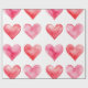 Papel De Presente Padrões de corações de aquarelas rosa e vermelha