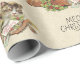 Enrole seus presentes de Natal com um papel de embrulho fofo com um gatinho vintage enfiado em um saco de mala de Natal em um padrão vermelho e verde de orelha oca em um fundo com textura castanha clara. O texto diz Feliz Natal e pode ser personalizado para o seu nome ou para dizer Feliz Natal ou Feliz Feriados.