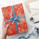Papel De Presente Padrões de Natal Festivos Dourados e vermelhos