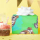 Os t-shirt do teste padrão das cabeças e das caudas do cão de St Bernard, os eletrônicos, os presentes, e os acessórios caracterizam nossa arte original pelo ilustrador talentoso das nossas crianças de um divertimento St Bernard da parte dianteira e da parte traseira em um teste padrão sem emenda do divertimento em um fundo azul textured.