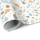 Pedras lisas coloridas ilustram o papel de embrulho terrazzo com fundo branco. Design universal para apresentar presentes para ela e para ele.