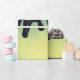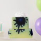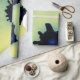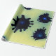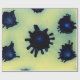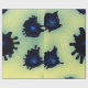 Paint Dripe abstrato art com azul sobre fundo amarelo pelo artista Jason Girard que pega tinta gotejada no papel para criar