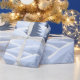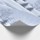Esta paisagem de inverno mostra um lago congelado cercado por colinas e árvores cobertas de neve. A design tem um padrão circular com uma explosão de sol no céu. O esquema de cores é azul e branco.