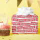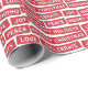 Um papel de embrulho com palavras de Natal. O padrão apresenta as palavras 'Feliz Natal', 'Hohoho', 'Papais noeis', 'Paz', 'Celebrar', 'Joy', 'Felizes Feriados' e 'Amor' em vermelho e branco. Personalize a cor de fundo, o tamanho do padrão entre outras opções.