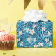 Palma deixa um padrão uniforme azul com flores de frangipani. © e ® Bigstock® - Todos os direitos reservados.