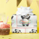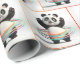 Um panda alegre usa múltiplas alças coloridas, expressando alegria e energia. O fundo é um arco-íris gradiente ousado.