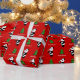 Papel de envolvimento bonito do Natal do urso de panda no vermelho. A panda inocente está decorando seu/sua árvore de Natal com ornamento que veste o chapéu do papai noel. O design colorido e engraçado do Natal para a panda ventila!! Desenhos animados felizes e bonitos da panda criados por Naomi Ochiai de Japão.