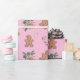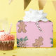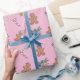 Este design bonitinho e feminino apresenta um padrão de natal de gengibre, homens, arcos, canetas doces, Poinsettias e estrelas de ouro reluzente sobre fundo rosa. Adicione um toque de reluz ao seu presente de Natal, doendo com este papel de embrulho divertido e festivo. O brilho dourado não é um brilho "real", mas sim um efeito impresso.