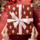 Papel De Presente Pão De Natal No Fundo Vermelho Escuro