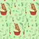 Um homem sorridente de gengibre senta-se sobre um cupcake fofo adornada com hortelã, tempero de canela e tudo o que é legal!