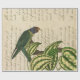 Esta design inspirada na safra mostra um papagaio verde com uma cabeça azul nos galhos com folhas. O fundo tem escrevendo cursivo. Excelente para desacoplamento de trabalho de arte, de papel ou de presente. Certifique-se de verificar o modo de exibição "costura" para garantir que ele seja aceitável.