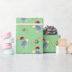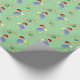 Compartilhe de algum elogio do sul do feriado esta estação com este papel de envolvimento que caracteriza um pelicano bonito que veste um chapéu do papai noel e a palavra "Noel" com uma grinalda para a letra "O" em um fundo verde animador.