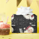 Quão entusiasmados estariam os vossos filhos na manhã de Natal para verem pacotes com este Pai Natal e o seu nome escrito por todo o presente? Os flocos de neve estão espalhados sobre o fundo preto. Personalize com o nome do seu filho com o modelo fornecido.