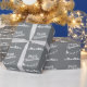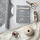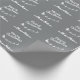 Este elegante papel de embrulho de Natal de cinza prateada apresenta a silhueta de Papais noeis para dormir com suas renas, voando sobre as casas em um trilho de estrelas. O texto, em uma fonte branca elegante, é totalmente personalizável.