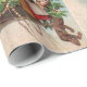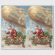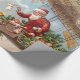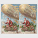 Papel de envolvimento encantador do vintage que caracteriza o papai noel em um cheio do dirigível dos brinquedos.