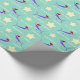 Este papel de envolvimento do divertimento caracteriza chapéus ostentando do papai noel dos peixes do espadim azul e as estrelas amarelas em um vintage denominam o fundo verde. Personalize com seu próprio texto usando o modelo. O clique personaliza-o para fazer mudanças à colocação da pia batismal e do texto.