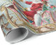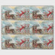 Papel de envolvimento encantador do vintage que caracteriza o papai noel em seu trenó em sua maneira à cidade seguinte.
